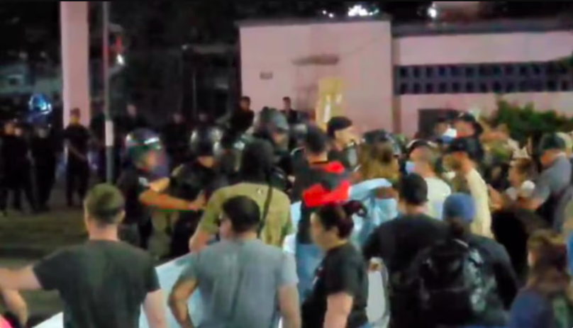 En Rosario, la protesta frente a la Jefatura de Policía escaló rápidamente. Lo que había comenzado como una concentración derivó en momentos de extrema tensión, cuando efectivos en servicio recibieron la orden de intervenir y terminaron enfrentándose con otros policías que participaban de la protesta. Patrulleros con sirenas encendidas, vehículos detenidos y calles bloqueadas marcaron una escena inédita, con la propia fuerza enfrentada consigo misma.